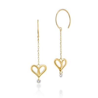 揺れるハートとダイヤが耳元に華やかさをプラスするエレガントなデザインで、シーズンを問わず使っていただけます。「メッセージとともに記憶に刻まれるハート」として、贈り物にも最適です。